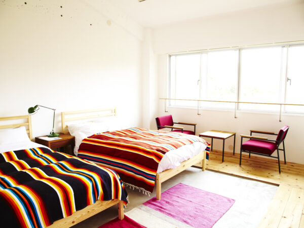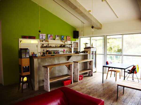 海沿いのロードサイドに建つ、釣りのプロガイドが運営するB&Bスタイル(Bed & Breakfast)の宿泊施設です。もともと和風の旅館だった内装を解体し、コンクリートの構造体をむき出しにすることで、本来この建築がもっていた空間のダイナミズムを獲得しました。それは同時に、家具や釣り道具などの大小さまざまなモノや色を抱擁し、気の置けない空間をつくろうとしたものです。マリンスポーツを楽しむ宿泊客や地元の仲間が集まり、余暇を楽しむ時間が流れています。